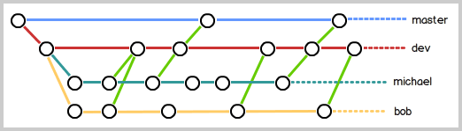 你和你的小伙伴们每个人都在dev分支上干活,每个人都有自己的分支,时不时地往dev分支上合并就可以了。