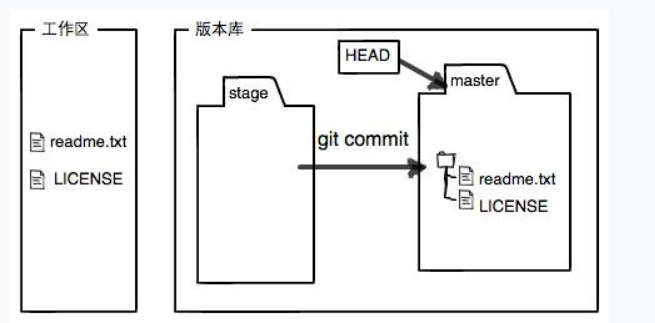 暂存区,然后,一次性提交暂存区的所有修改。 - 一旦提交后,如果你又没有对工作区做任何修改,那么工作区就是“干净”的,即