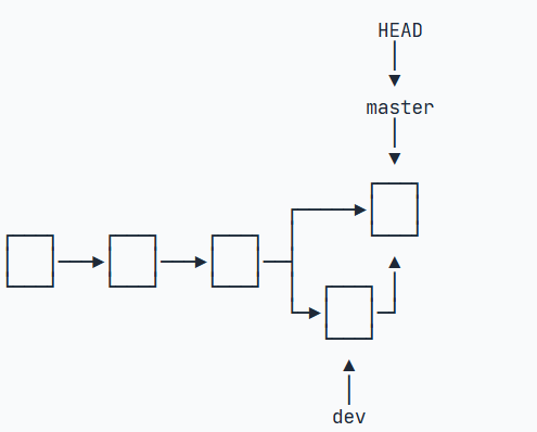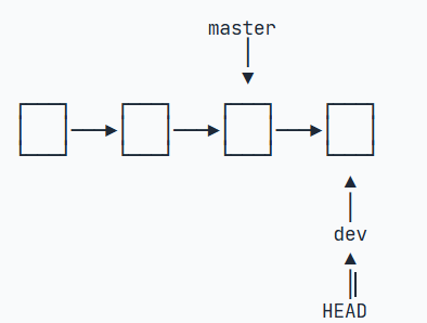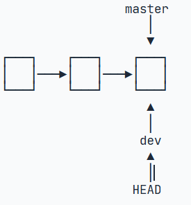 这个时候不会产生新的结点,也不会有合并冲突,之后我们甚至可以删除dev分支