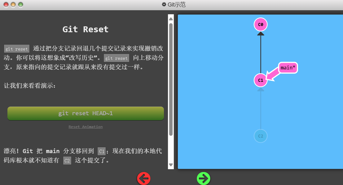 虽然在你的本地分支中使用 git reset 很方便,但是这种“改写历史”的方法对大家一起使用的远程分支是无效的哦!