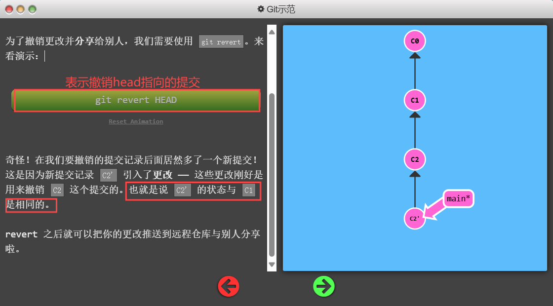 为了撤销更改并分享给别人,我们需要使用 git revert
