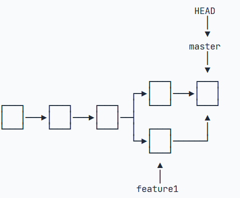 如果我们想把feature1分支合并到master分支,使用rebase,我们需要先切换到feature1分支,然后执行git rebase master