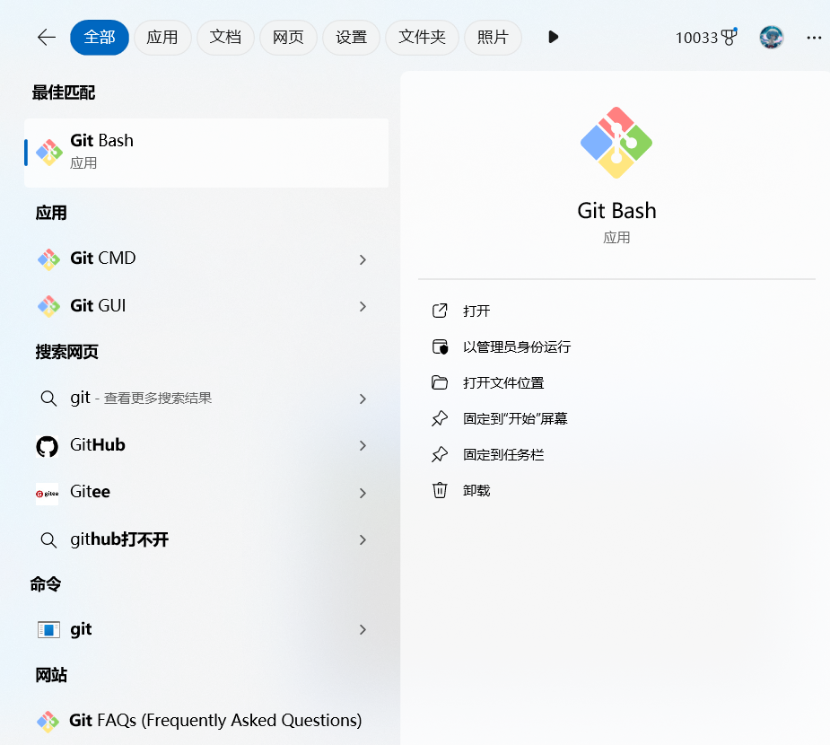 安装完成后,在开始菜单里找到“Git”->“Git Bash”,蹦出一个类似命令行窗口的东西,就说明Git安装成功!
